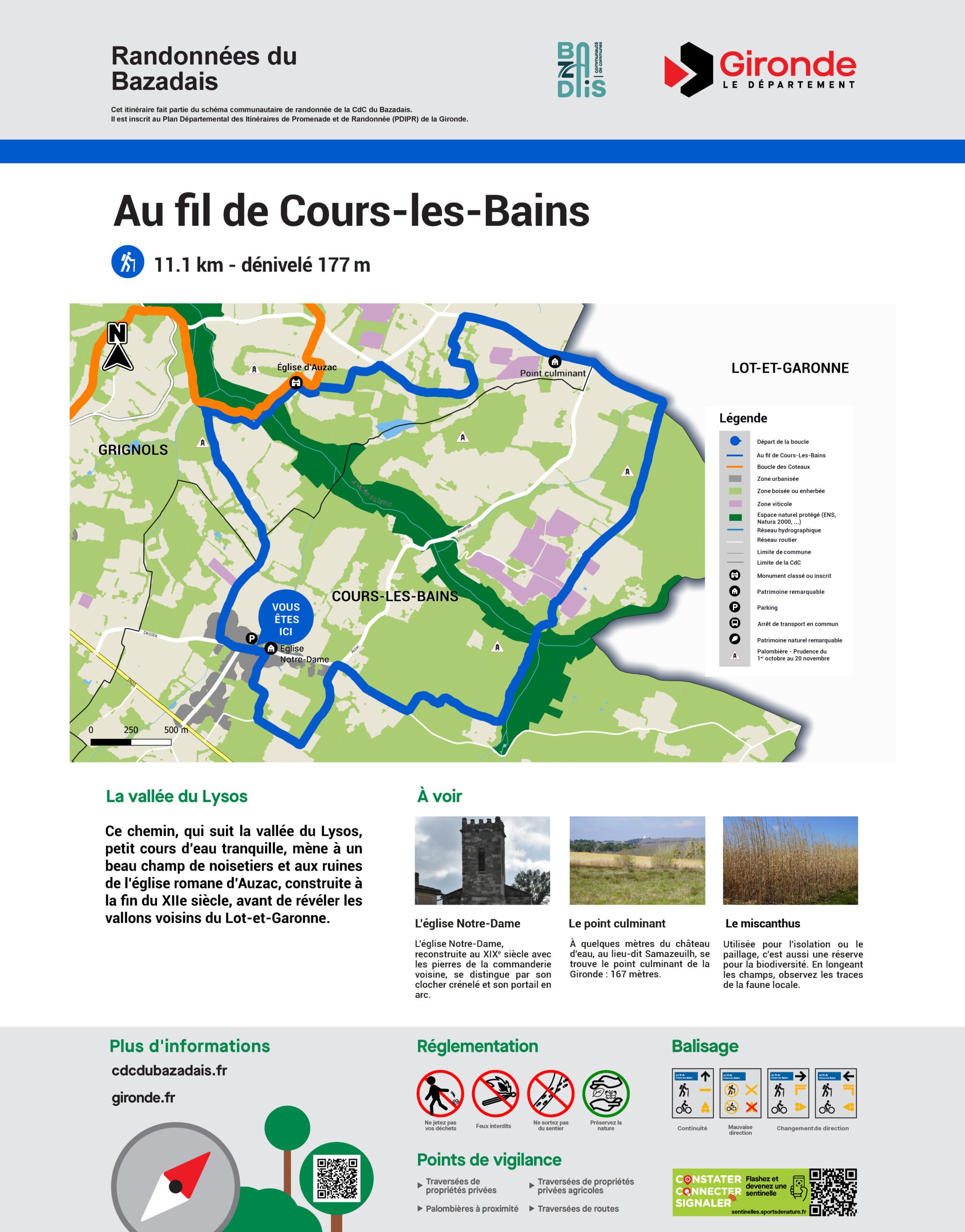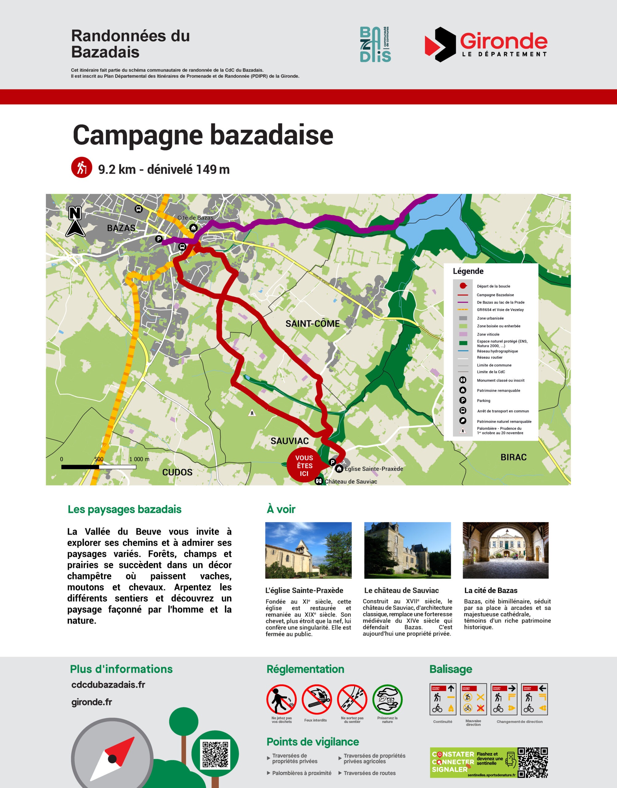 Grâce au Plan Départemental des Itinéraires de Promenade et de Randonnée (PDIPR), des boucles balisées vous invitent à parcourir forêts, vallons, rivières et villages typiques du Bazadais.