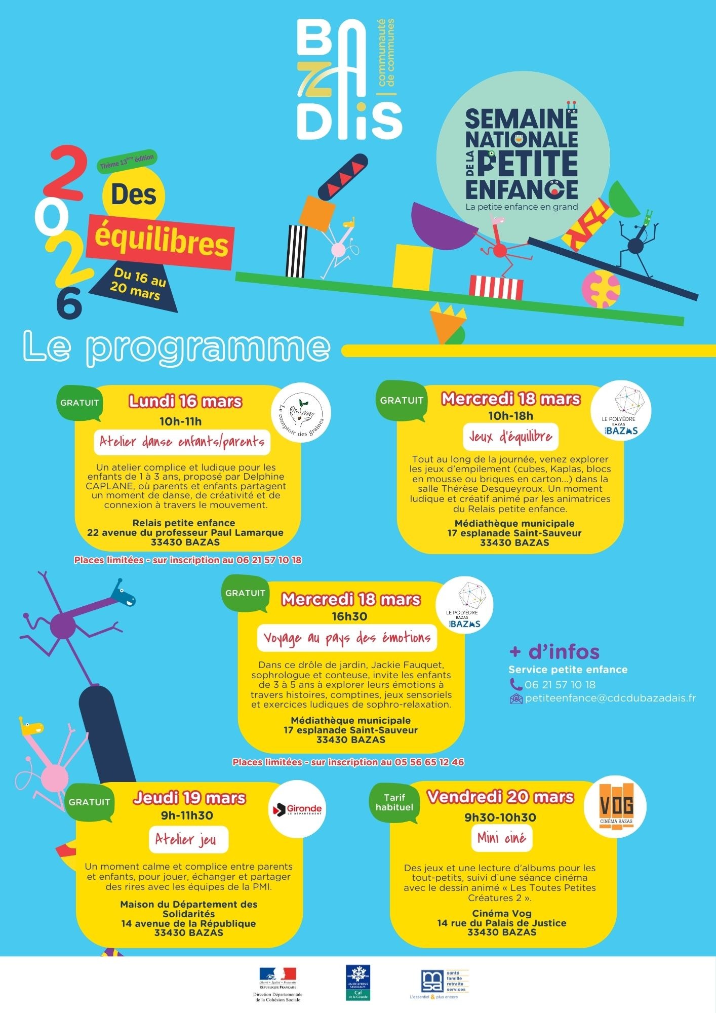 À cette occasion, la Communauté de Communes du Bazadais, avec le soutien financier de la CAF et de la MSA, propose un programme d’activités pour favoriser l’éveil et la créativité des tout-petits.